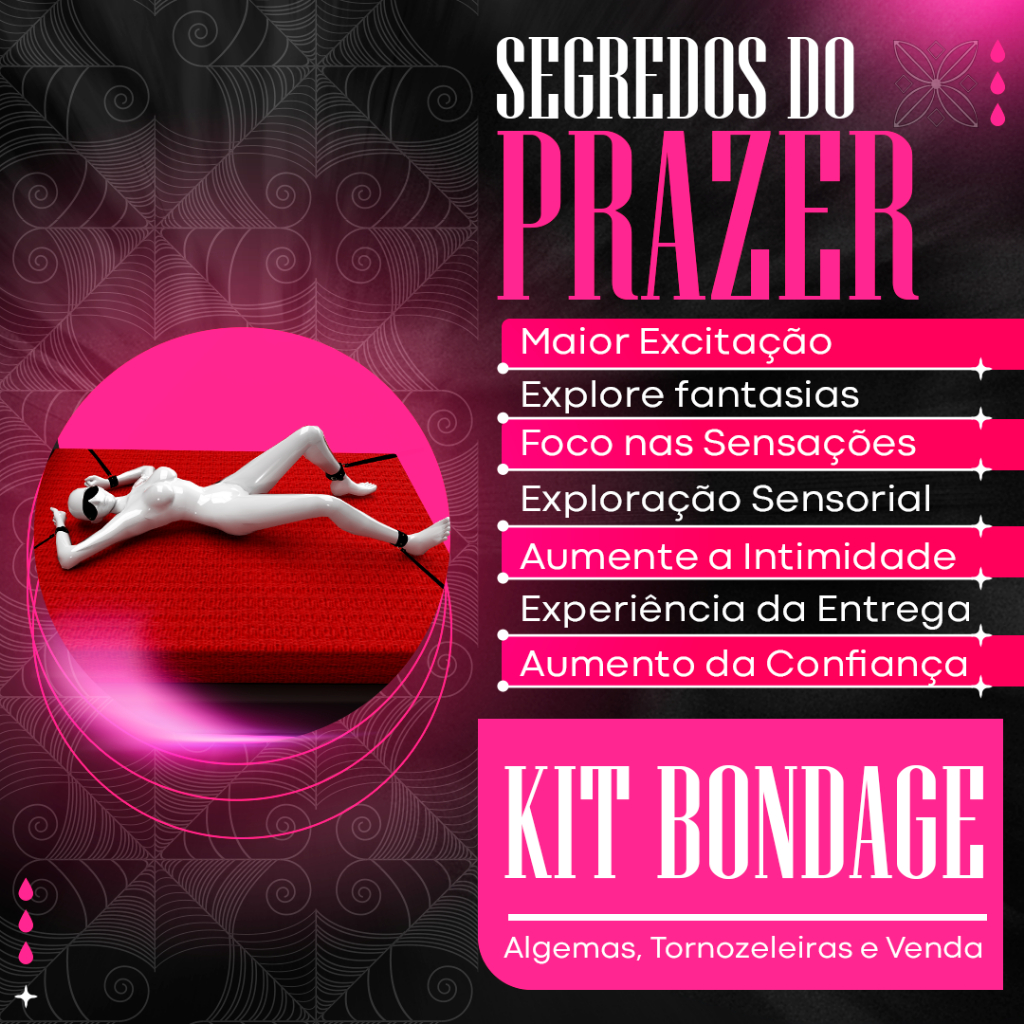 Kit Bondage Bdsm Algemas Prender Na Cama Amarrar Imobilizar Submissão Mascara