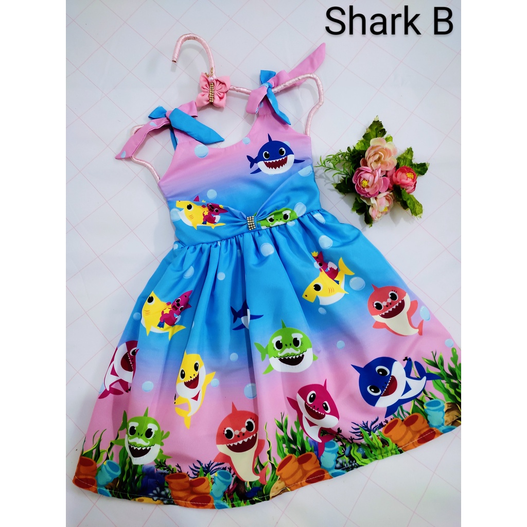Vestido infantil Baby Shark Luxo ajustavel tematico festa aniversario