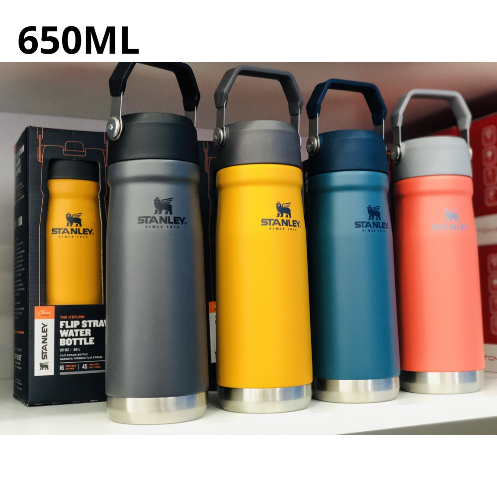 Garrafa Térmica Stley Flip Straw 650ml Inox Tampa com Alça e Bico Com Canudo tipo stanley