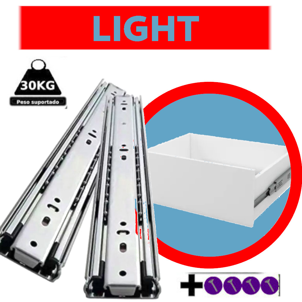 Corrediça telescópica 25CM/30CM/35CM/40CM/45CM/50CM trilho de gaveta LIGHT p/ armário de cozinha e móveis