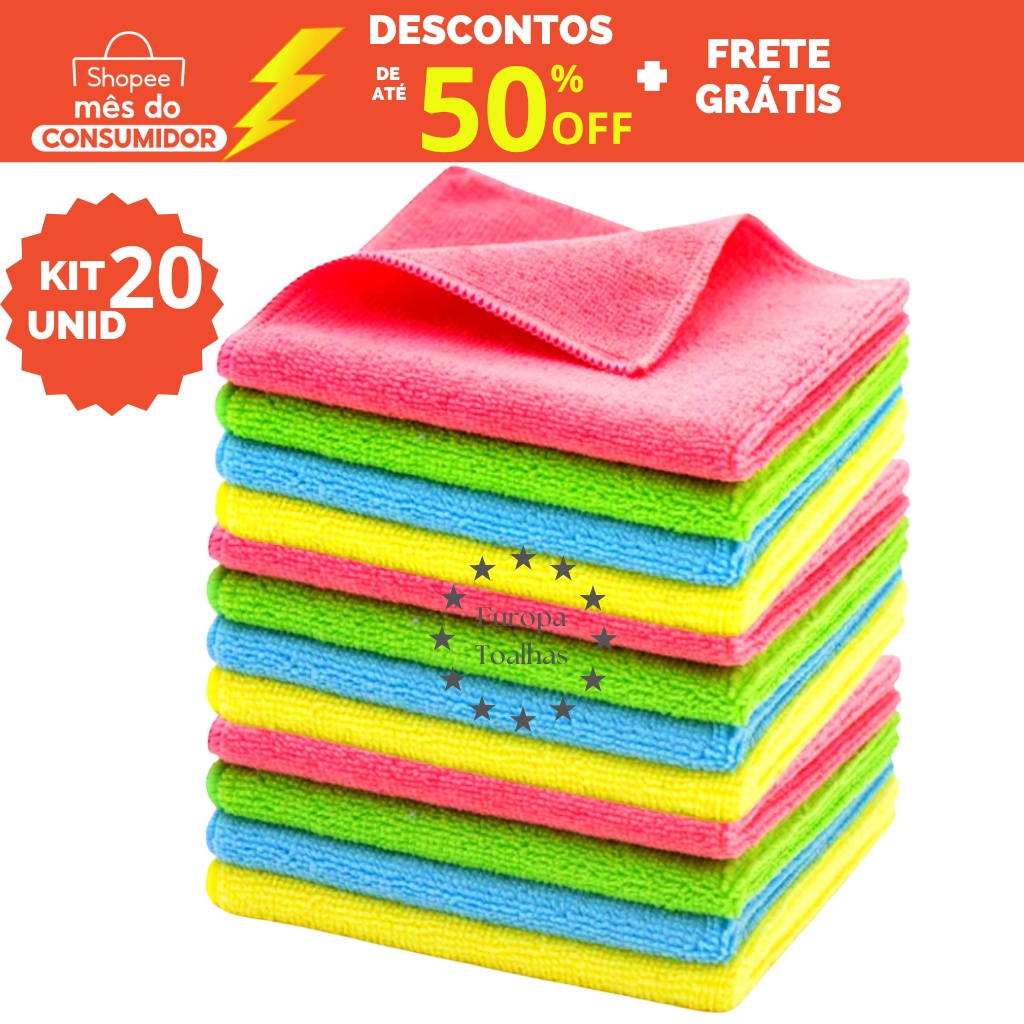 Kit 20 Panos De Microfibra Multiuso Ultra Absorção