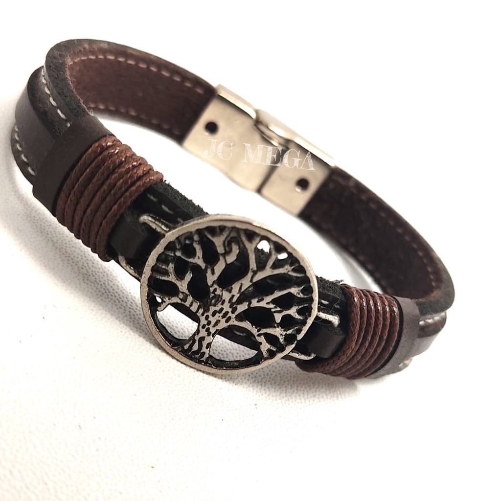 Pulseira de Couro Berloque Arvore da Vida Fecho Magnético Gospel Cristão Evangélico