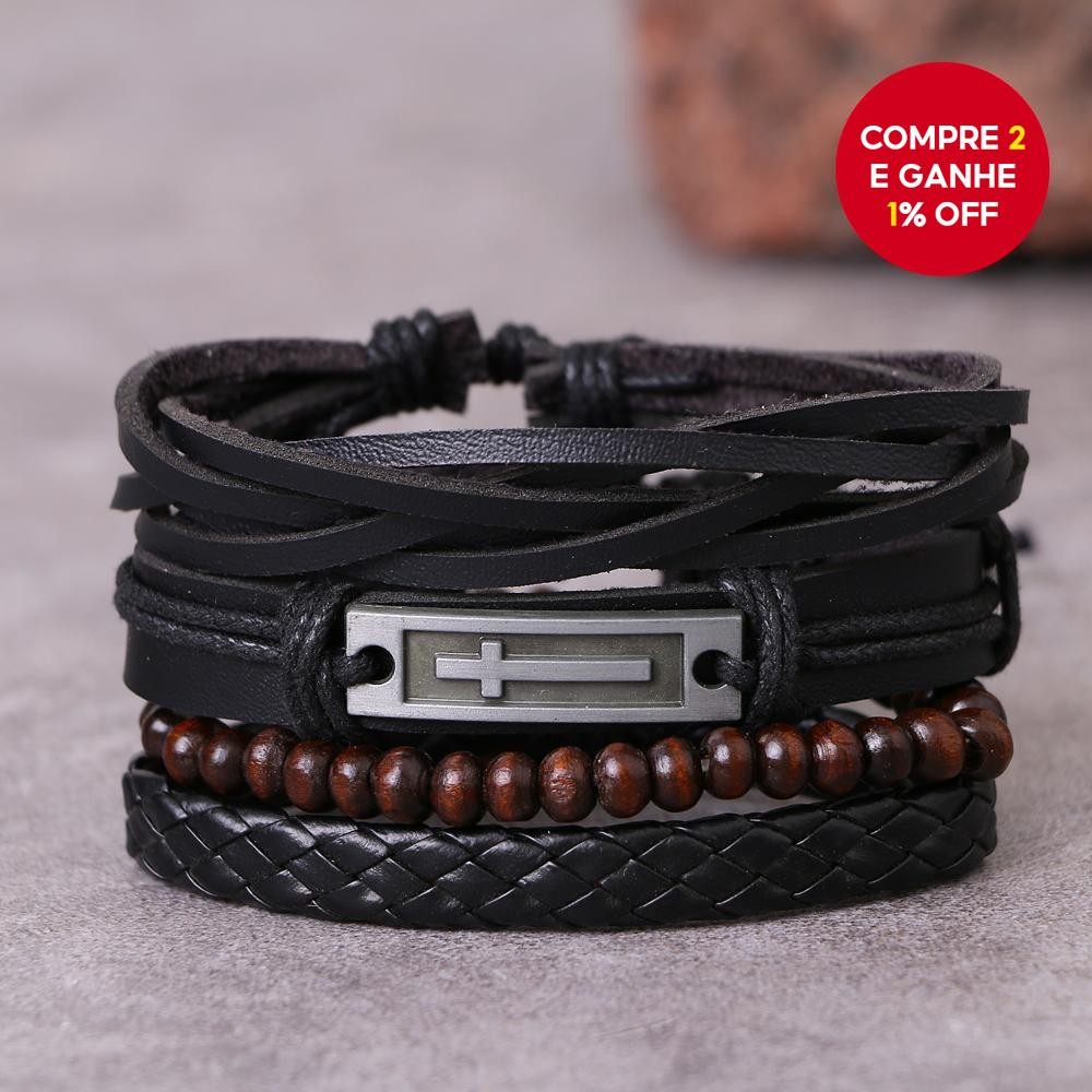 Pulseira De Couro Trançado Com Contas Cruzadas Multicamadas Elegantes Joias Da Moda Masculina