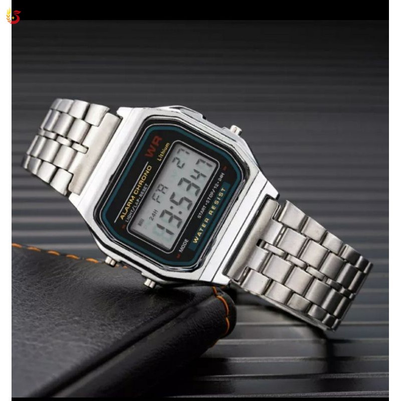 Relógio retro LED CASIO com pulseira de aço inoxidável unissex à prova d\'água relógio digital de quartzo