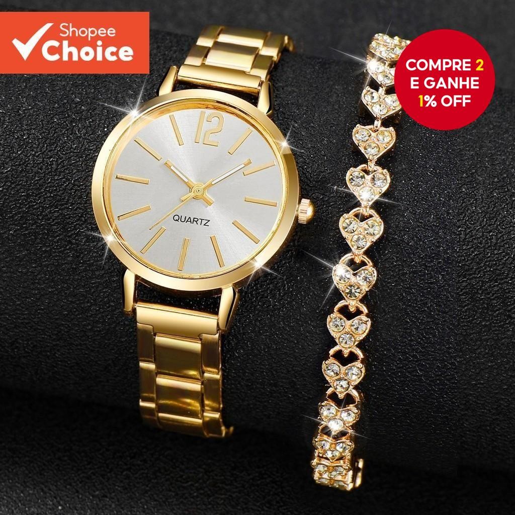 Relógio Feminino Dourado Banhado a Ouro 18k Original a Prova d'água + Pulseira