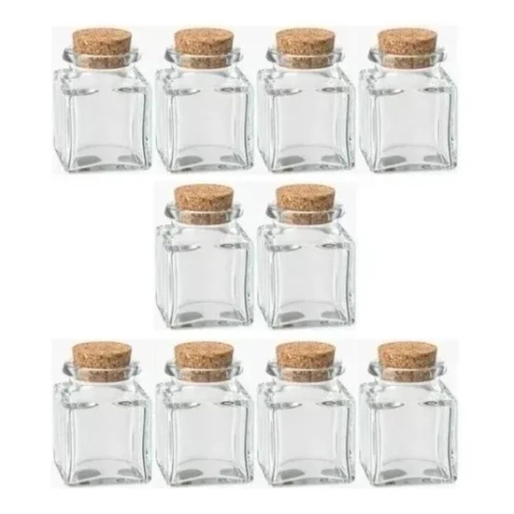 Kit 10 Potinhos de Vidro Tampa Rolha 50ml OU 90ml 5cm x 5cm Cortiça Portuguesa 50ml Porta Temperos Especiarias Bijuterias Sais de Banho Pote Lembrancinha