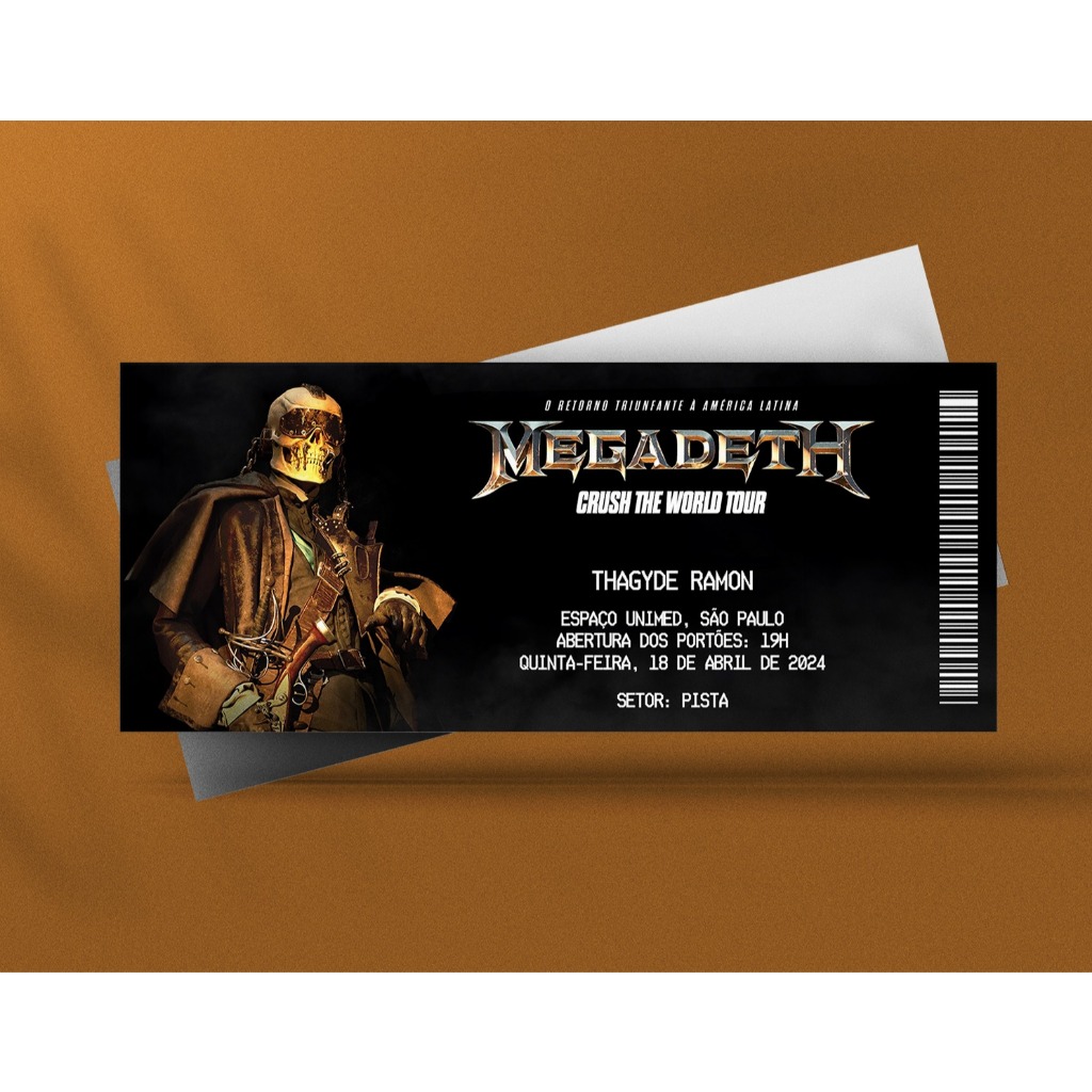 Ingresso Holográfico Personalizado Megadeth - Crush The World Tour - Se o frete ficar alto, me chame no chat