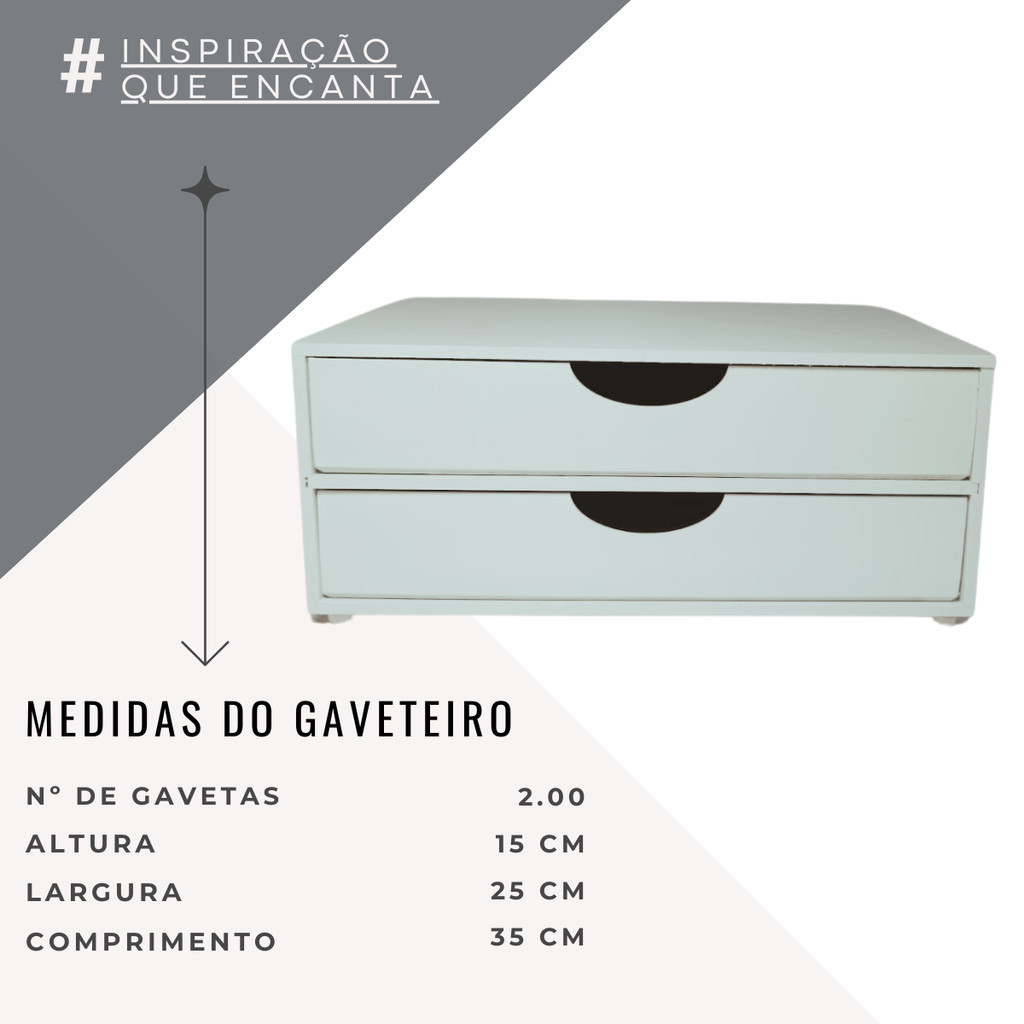 Gaveteiro Com 2 Gavetas Organizador Em Madeira Mdf Folhas A4 Multiuso