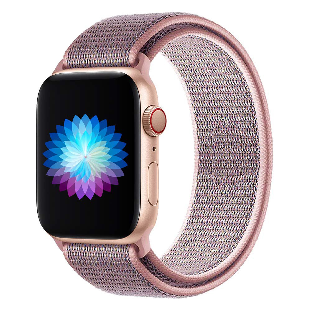 Pulseira Apple Watch Esportiva Nylon Loop 42/44/45mm 38/40/41mm Series 1 2 3 4 5 6 7 e IWO 8, 9 e 10 Rosa Areia