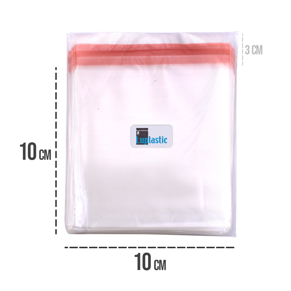 Saco Plástico Adesivado Transparente 10x10 cm Pacote de 1.000 un