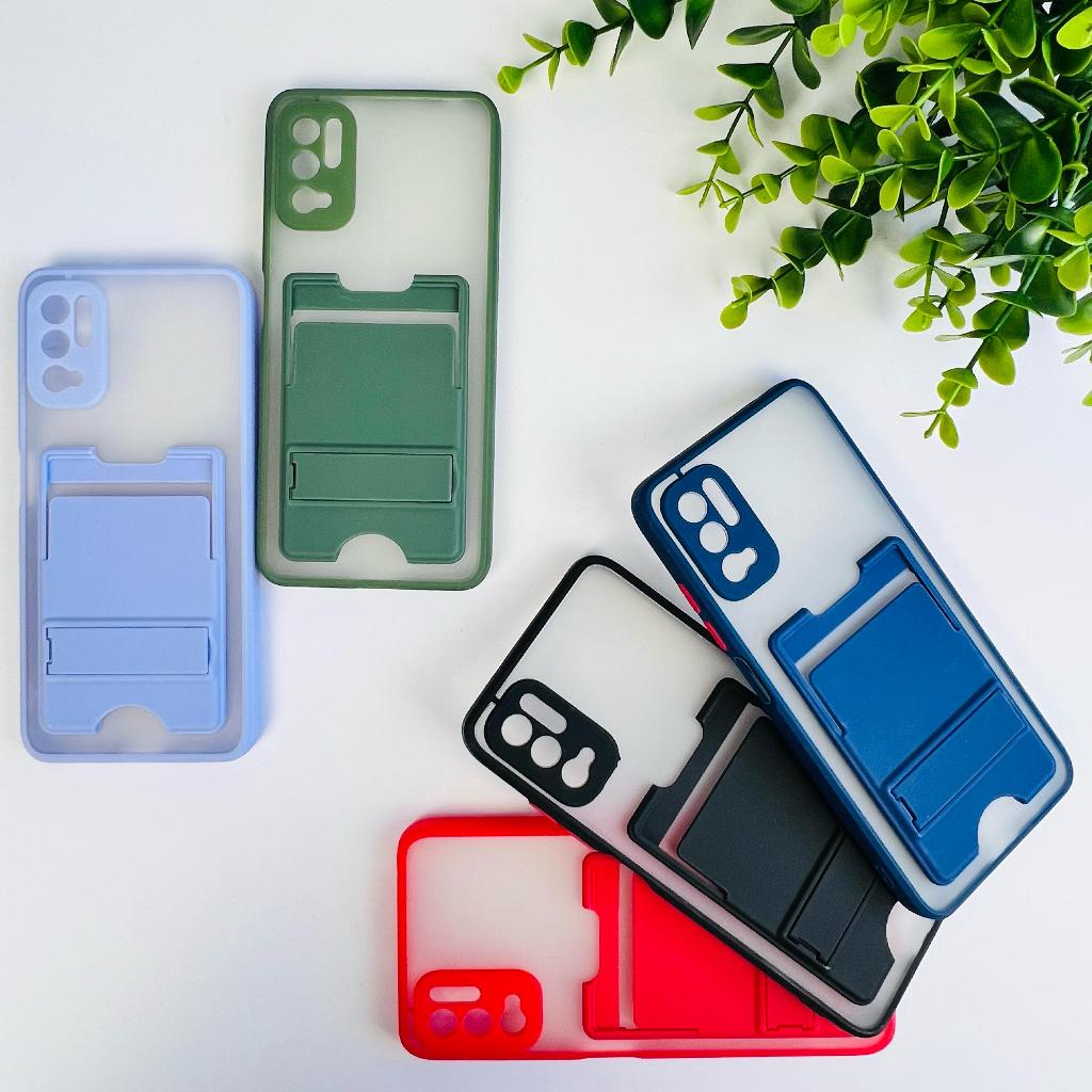 Capinha Porta Cartão com Suporte Para Xiaomi Redmi Note 10 5G / Poco M3 Pro / Capa Fosca Borda Colorida CF73