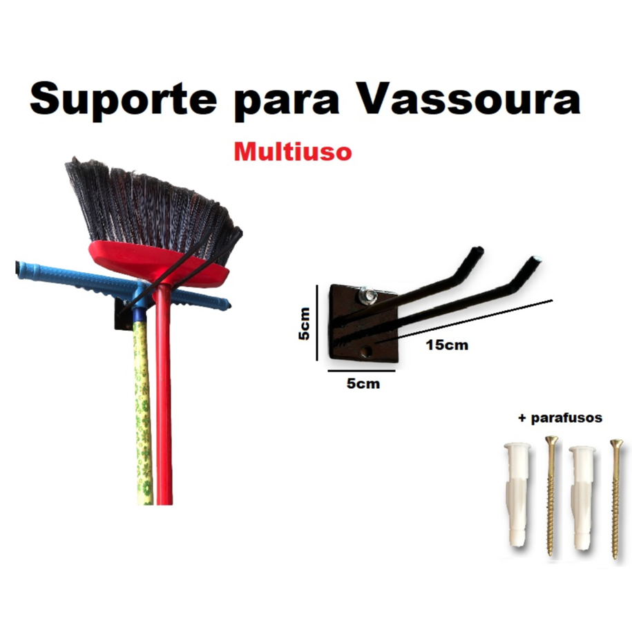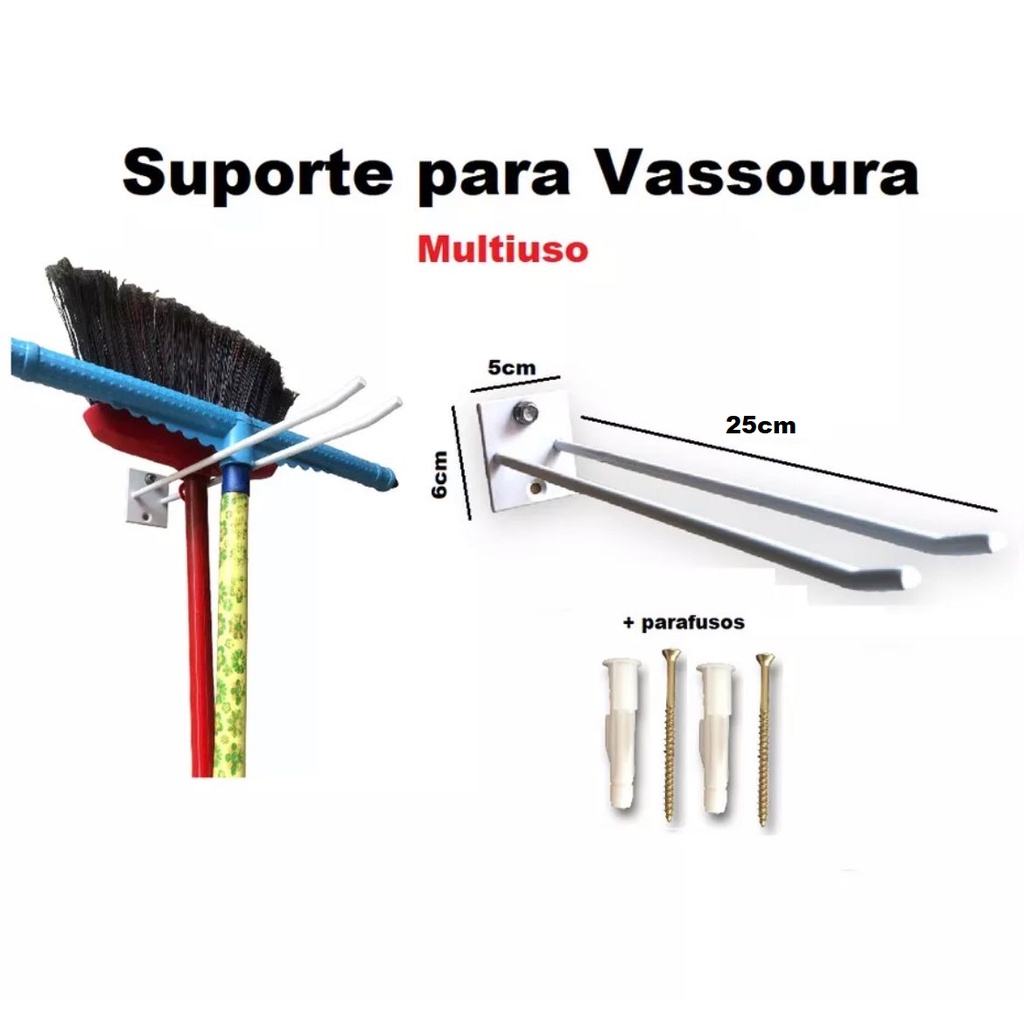Suporte para vassoura rodo pá de parede resistente e prático acompanha bucha e parafuso