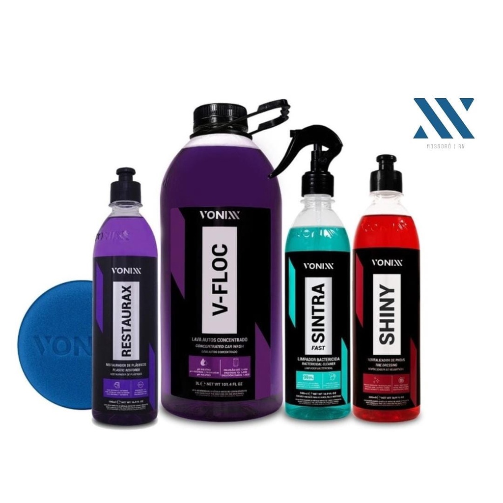 KIT VONIXX APLICADOR DE ESPUMA MACIO VONIXX + RESTAURAX 500ML + V-FLOC 3L + SINTRA FAST 500ML + SHINY 500ML