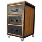 Mesa de Cabeceira Gaveteiro Modelo Cubo Industrial - Ferro e Madeira - com 3 Gavetas e 4 Rodízios