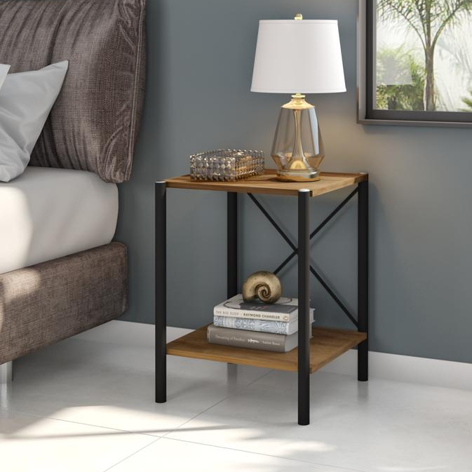 Mesa de Cabeceira Modelo Industrial 2 Prateleiras Pé Longo Mel / Preto