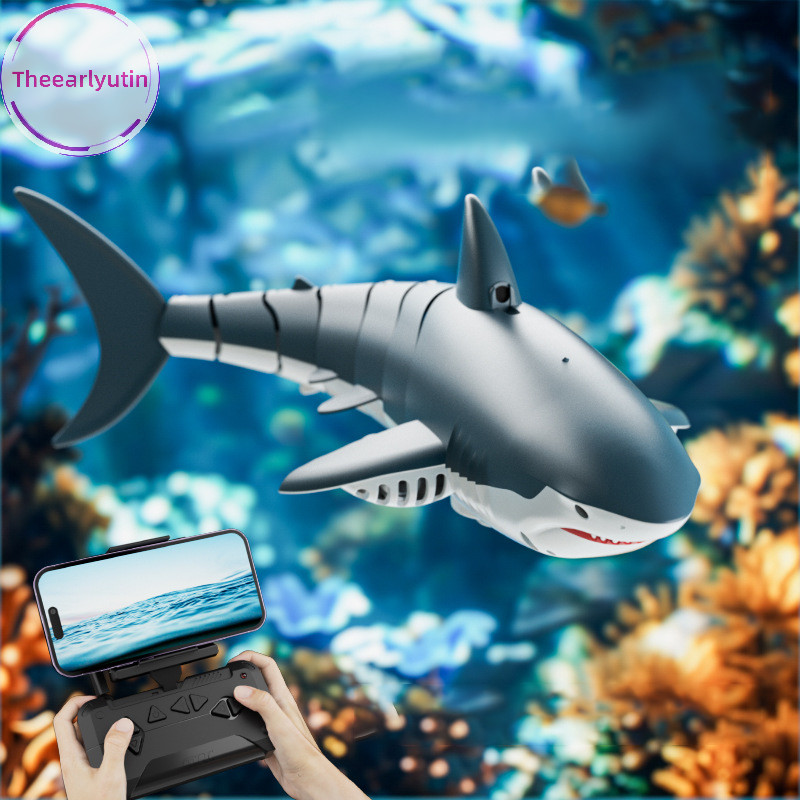 theearlyutin 2.4G Brinquedo De Tubarão De Controle Remoto Com Câmera 4K HD Inteligente Rc Baleia Água Barco Navio Robôs Submarinos Peixe Brinquedos Elétricos Para Crianças Meninos Bebê Chil