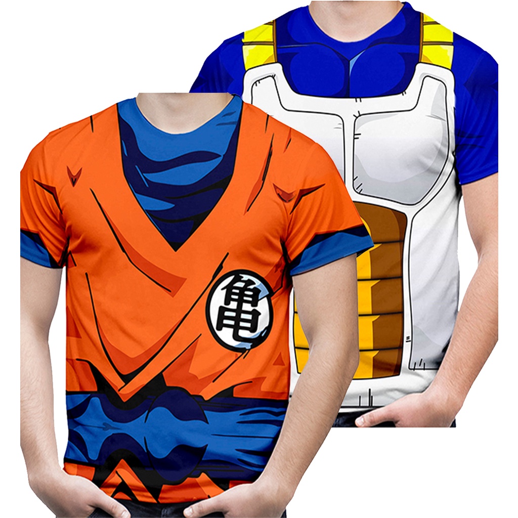 Kit Camisa Camiseta Goku e Vegeta Anime Dragonball 3D Full