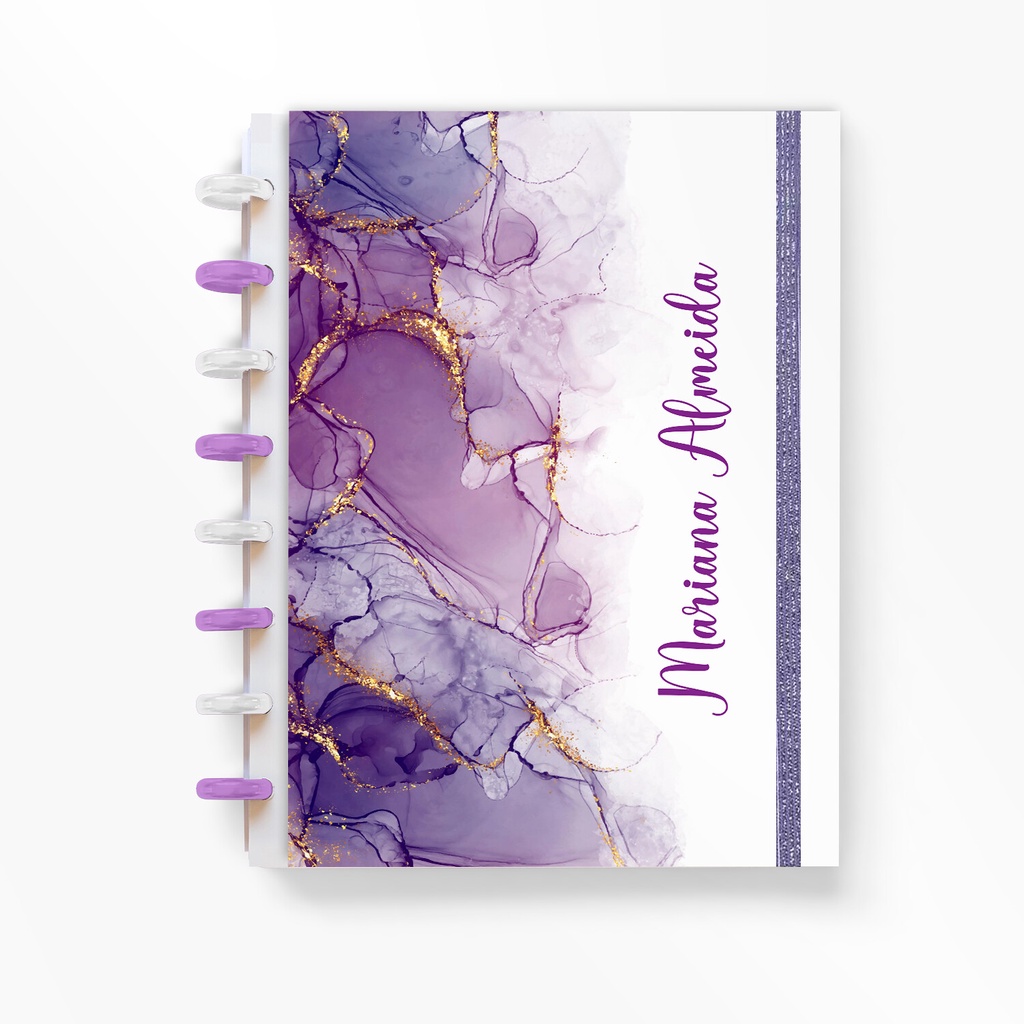 Caderno de Disco Personalizado Capa Dura - Caderno Inteligente - Marmoreado Lilás