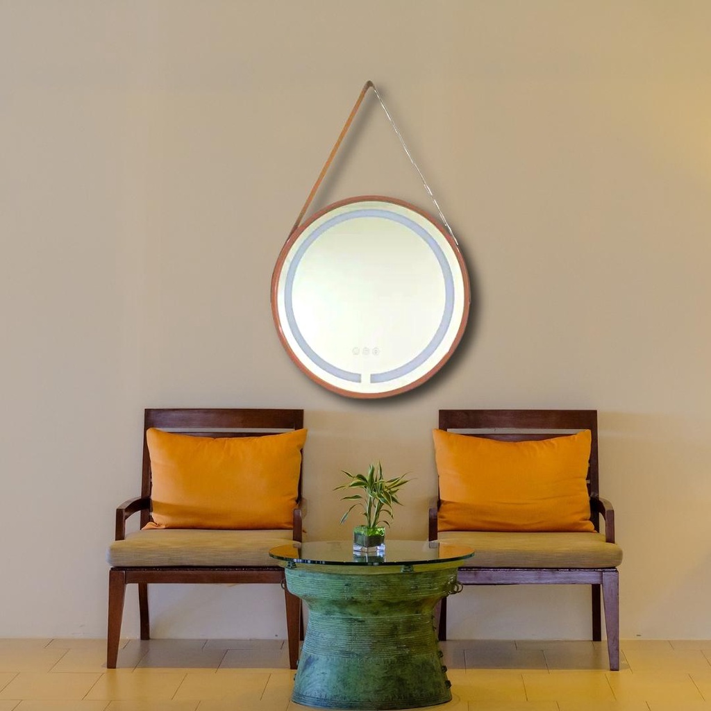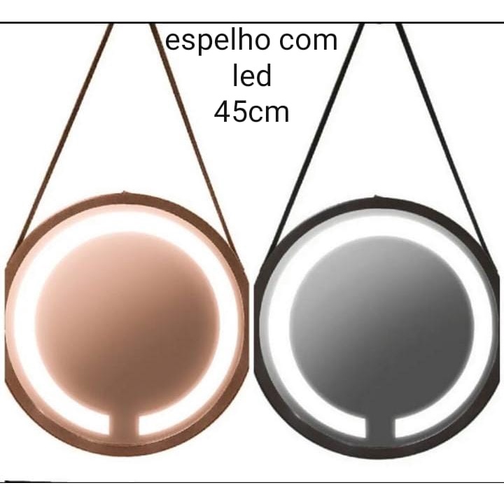 Espelho Decorativo Redondo Com Led 45CM Suspenso Com Alça Maquiagem Sala Toilete