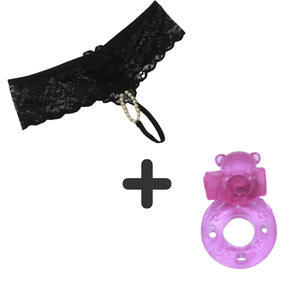 Kit Calcinha Tailandesa Tanga Fio Dental Com Pérola + Anel Vibrador