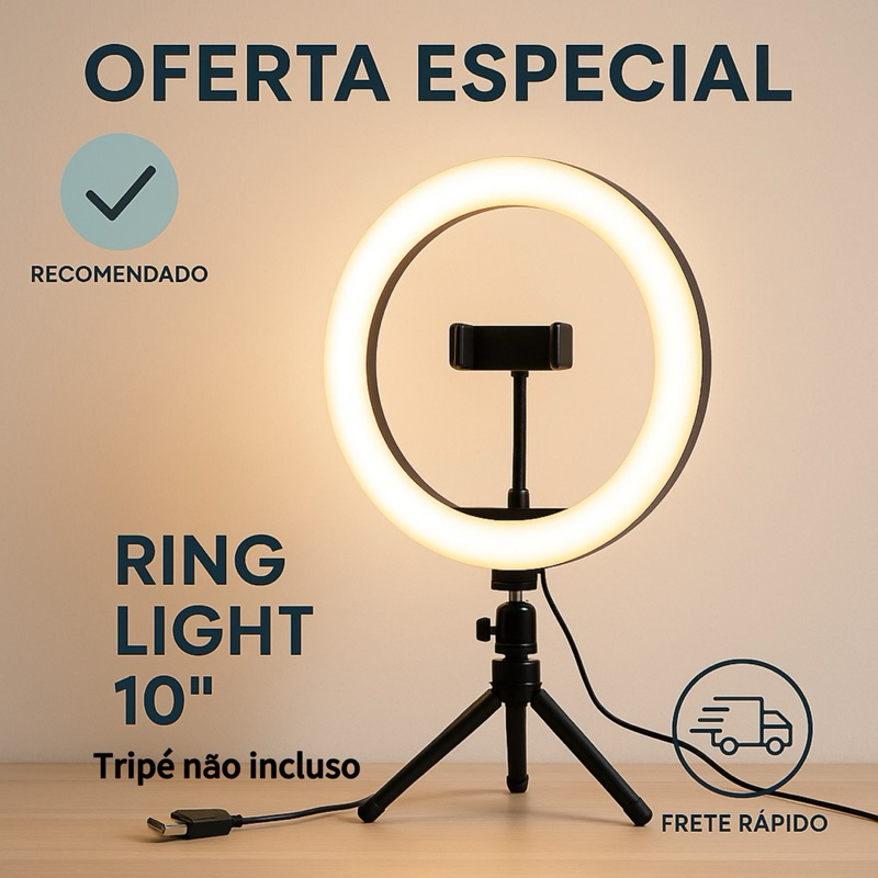 Ring Light Iluminador Anel Luz com suporte para celular 26cm 10 Polegadas 15w (tripé não incluso)