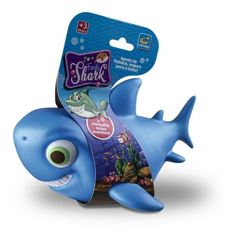 Brinquedo Tubarão Family Shark Baby Banho Bebê Infantil Vinil Macio Para Apertar Fofinho Mordedor Menino Menina Dia das Crianças