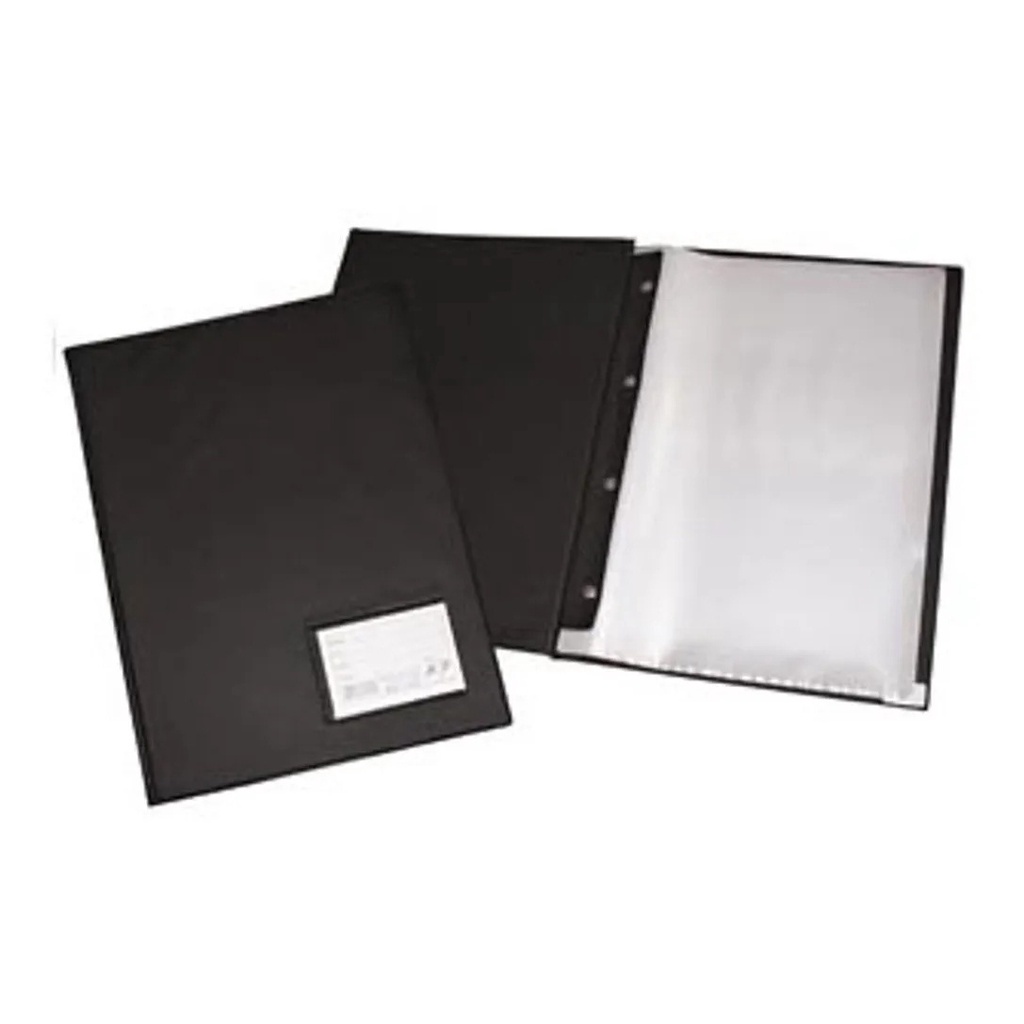 Pasta Catálogo A4 Ofício Preta ACP com 20 Sacos Plásticos Para Organizar e Arquivar Papéis, Documentos, Relatórios e Trabalhos