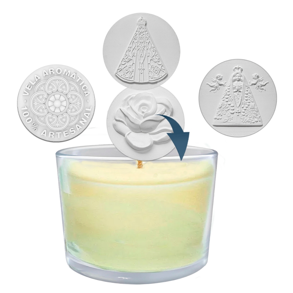 10 Potes de Vidro Cristal com Tampa Decorada de Gesso p/ Velas Artesanais 150ml | Potinho Copo Patê