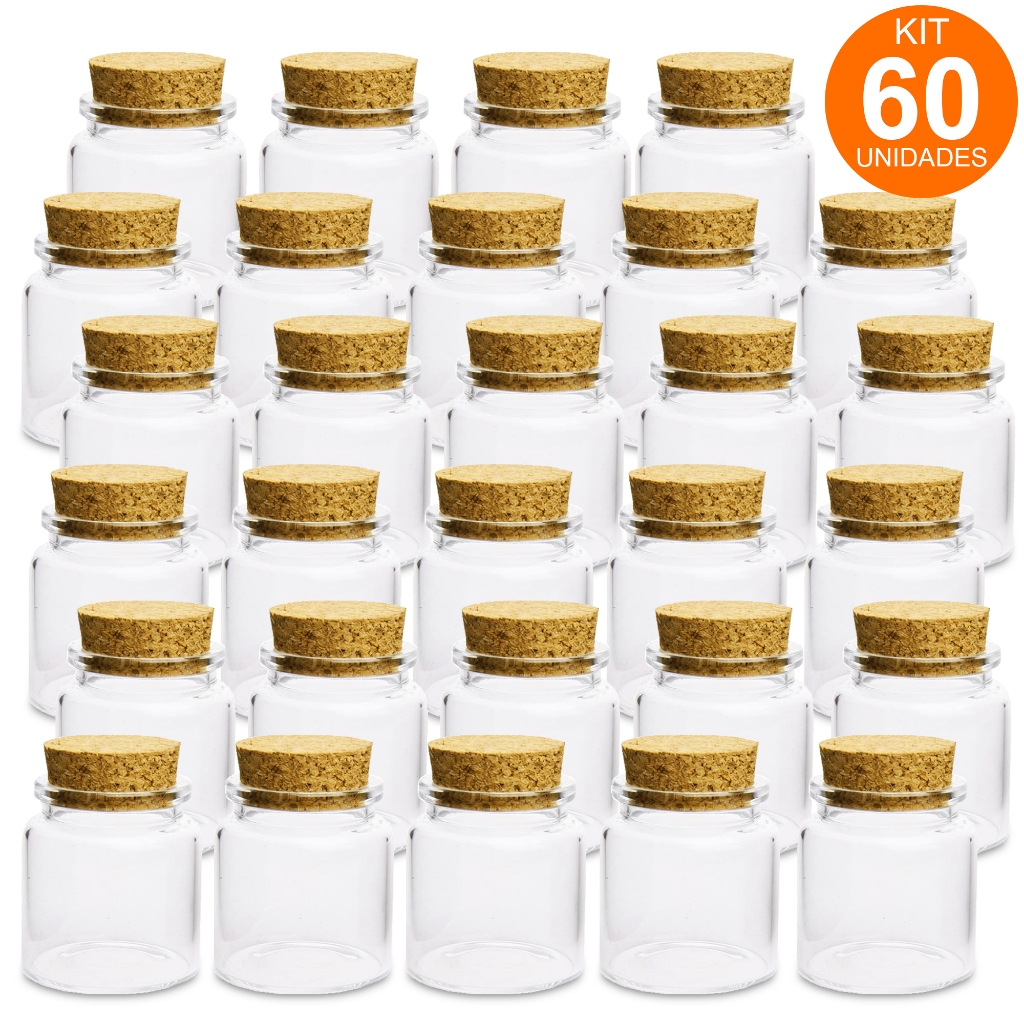 60 Mini Pote de Vidro para Lembrancinha Frasco Potinho 50ml com Rolha de Cortiça
