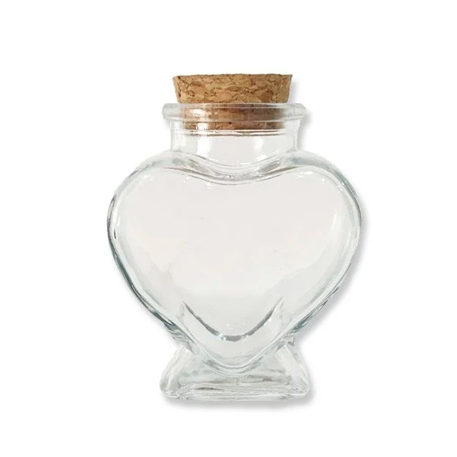 Potinho de Vidro Coração com Rolha 70ml - 20 unidade - 6cm x 7cm - Rizzo Embalagens