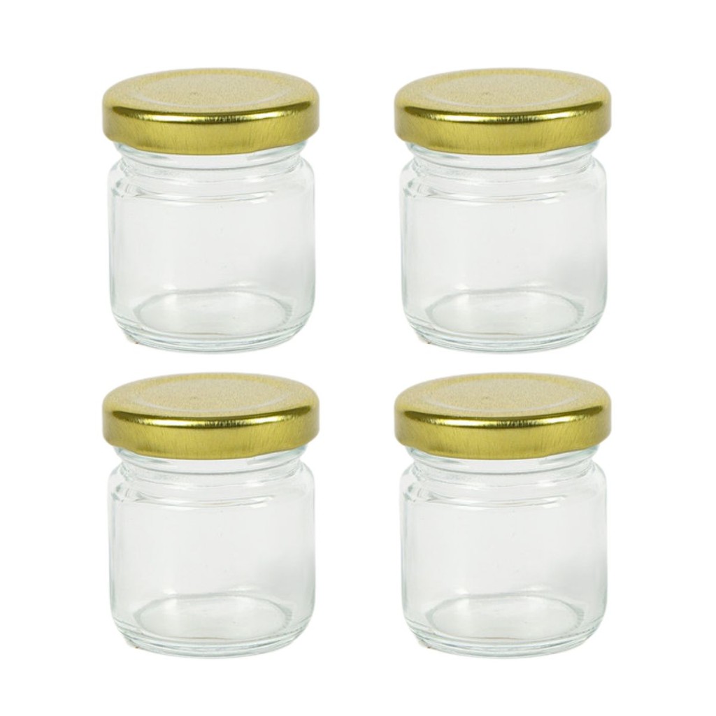 Kit 4 Potes de Vidro 40ML Tampa Metal Dourada Potinho Condimentos Tempero Lembrancinha Evento Festa