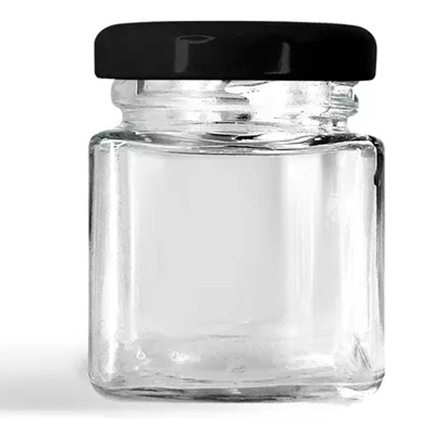 Potinho de Vidro Quadrado com Tampa Metal Preta 50ml - 5x4cm - 1 unidade - Rizzo