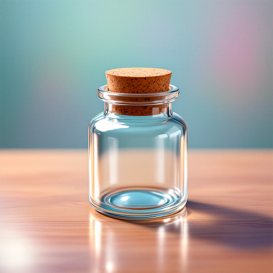 Potinho de Vidro com Tampa de Rolha 50ml - 4,5cm - 01 Unidade