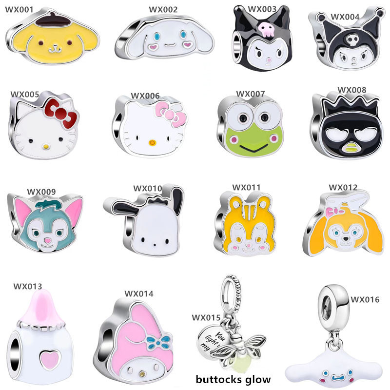 Pingentes De Prata Encanta Kuromi Melody Sanrio DIY Charme Clássico Presente Personagem De Cartoon Quente Pan's Alloy Bijuteria Pulseira Acessórios
