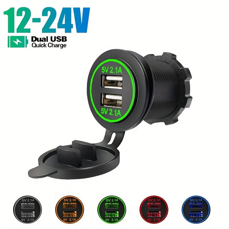 Adaptador De Carregador USB Duplo Para Carro 12V/24V 5V 3.1A Tomada De Saída De Energia Led À Prova De Pó iPhone Xiaomi Redmi Samsung Motocicleta RV