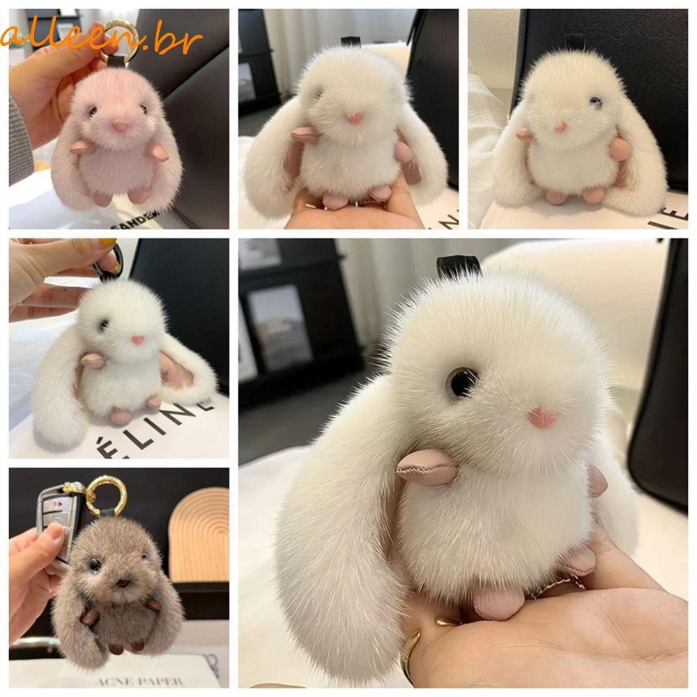 ALLEEN Chaveiro De Pele De Coelho , Animal Recheado Coelhinho Carro Pingente Pompom Boneca De Pelúcia Kawaii De Saco Ornamentos