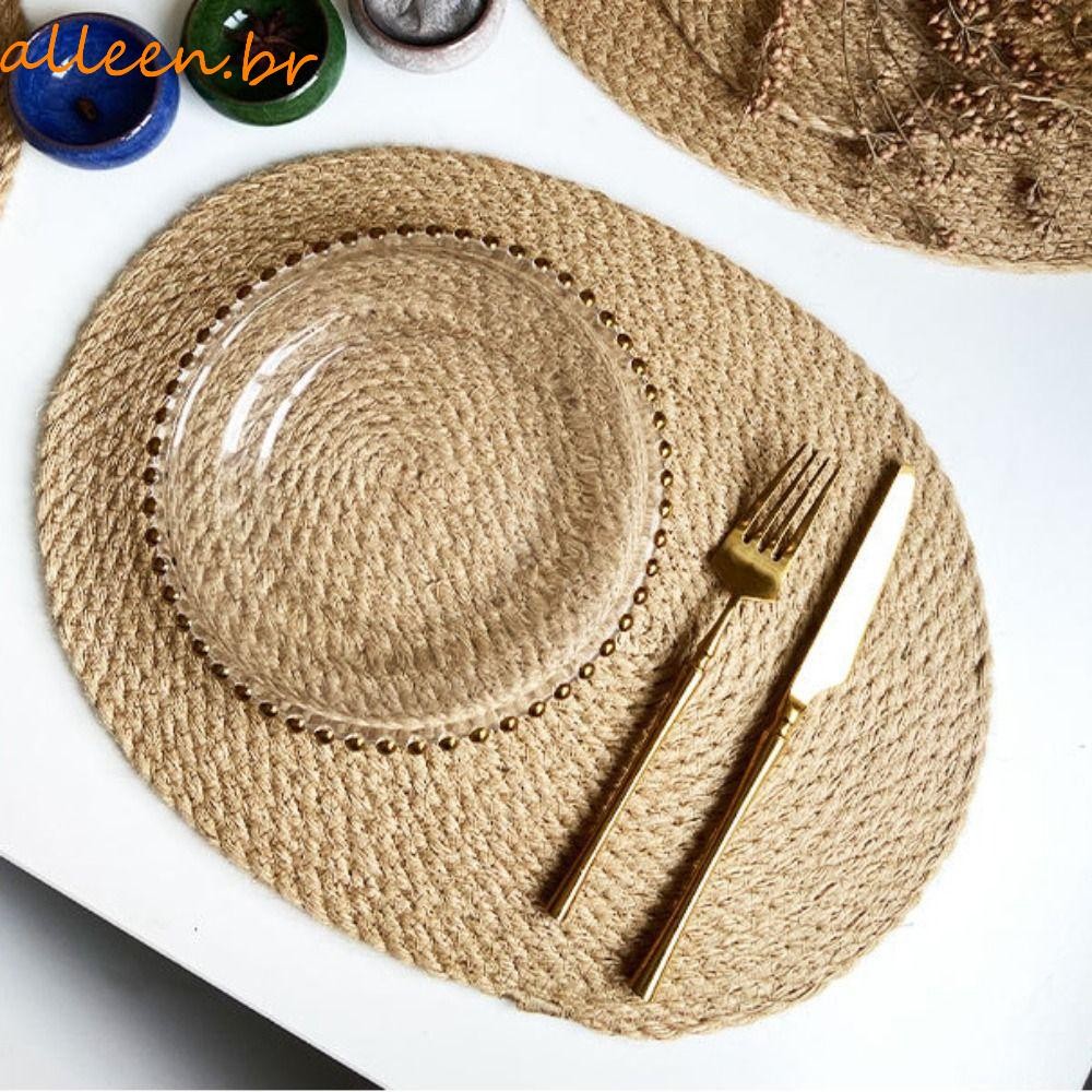 Tapete De Mesa Trançado De Palha ALLEEN , Jogo Americano Tecido Oval Com Isolamento Térmico Anti Escaldante , Almofada D