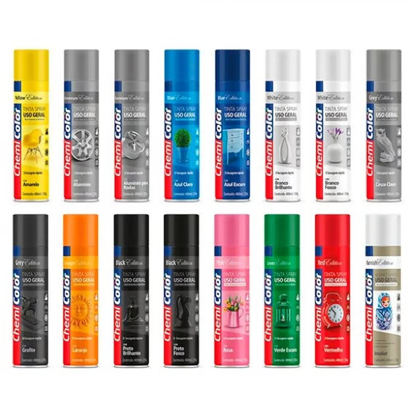 Tinta Spray Uso Geral ChemiColor Secagem Rápida Uso Interno/Externo 400ml / 250g TODAS AS CORES