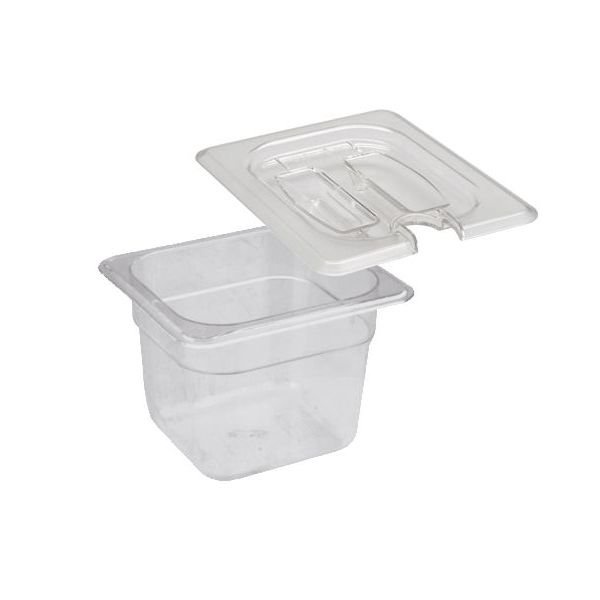 Cuba Gastronômica Policarbonato GN 1/6X100 mm 1,5 L + Tampa 1/6 Em Policarbonato Com Abertura Para Colher Cambro