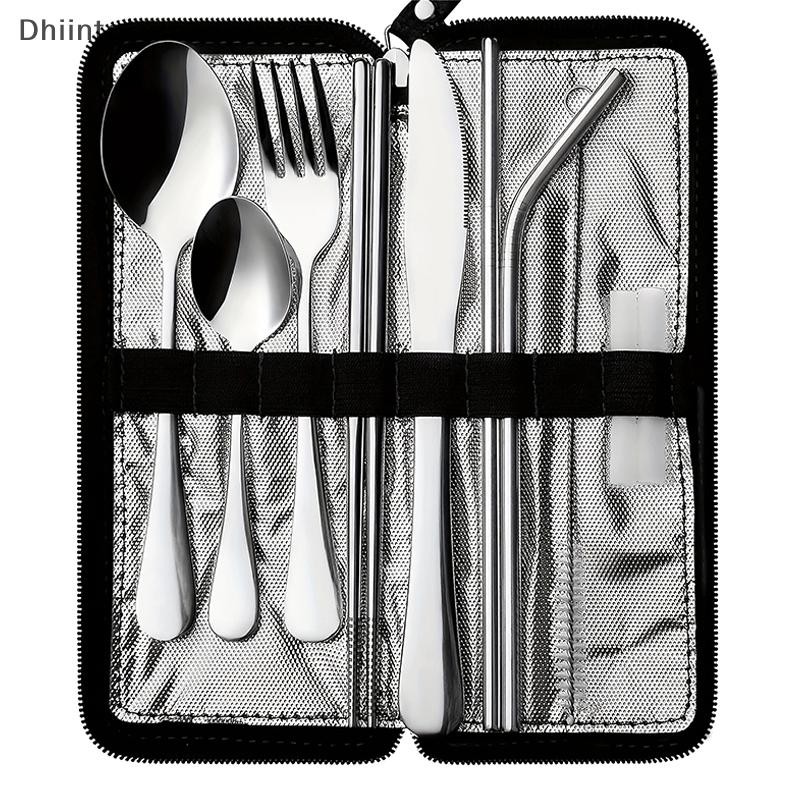 [Dhiint] 10 Peças De Utensílios Portáteis Para Viagem , Acampamento , Conjunto De Talheres De Aço Inoxidável , Garfo , C