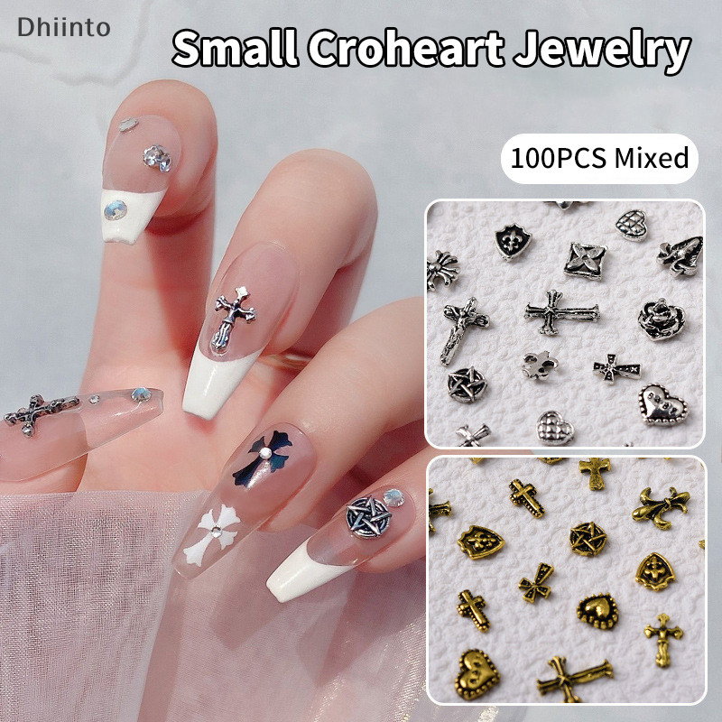 [Dhiint] 100pcs Mini Cruz Escura Corações Cromados Prego Diamante Metal Ch Retro DIY Decoração Acessórios Personalidade Arte De Unhas Entusiastas Em
