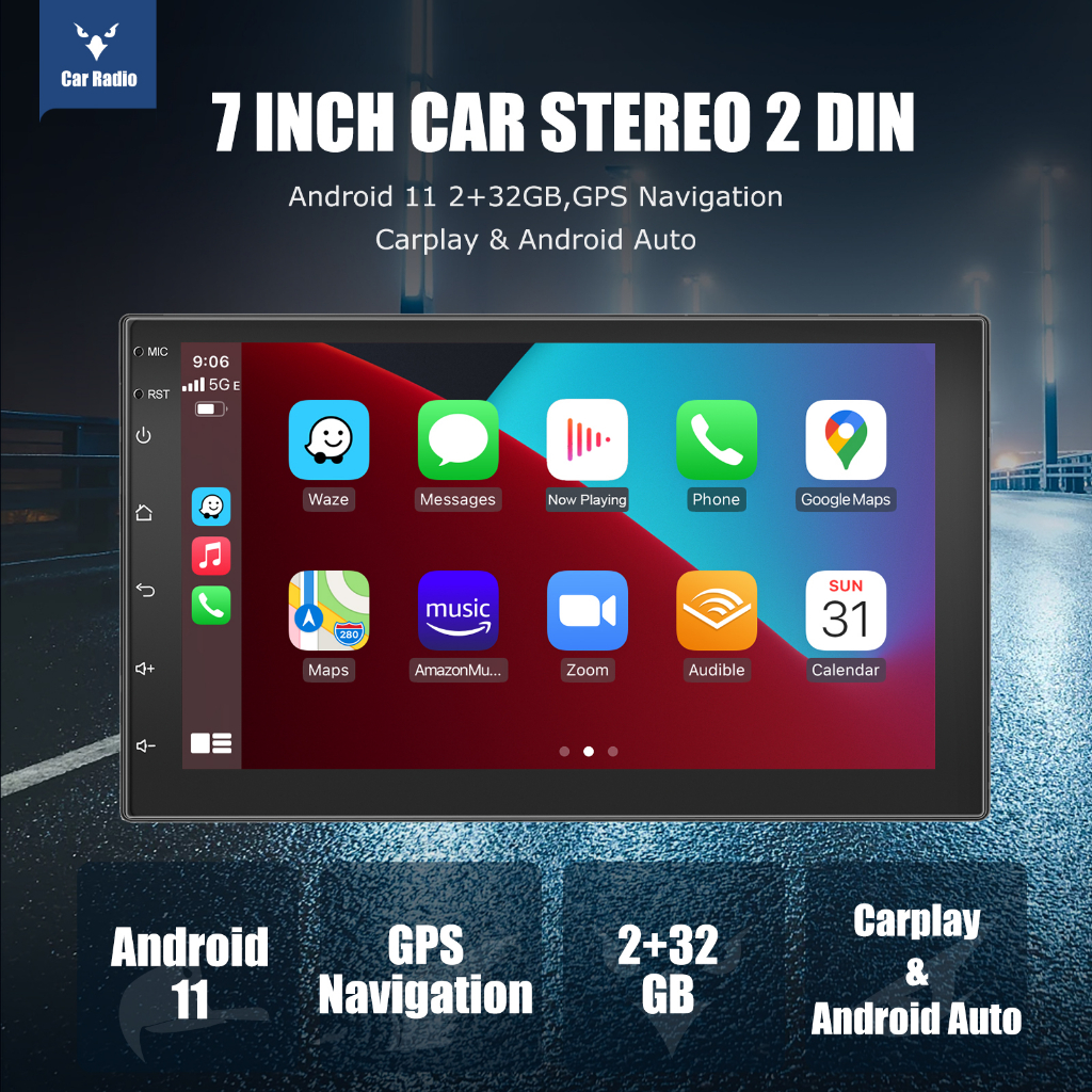 ESSGOO 2 DIN Carplay 7 " Polegadas Android Auto Bluetooth RDS AM FM Rádio MP5 Player Espelho Link Com USB Aux De Carro