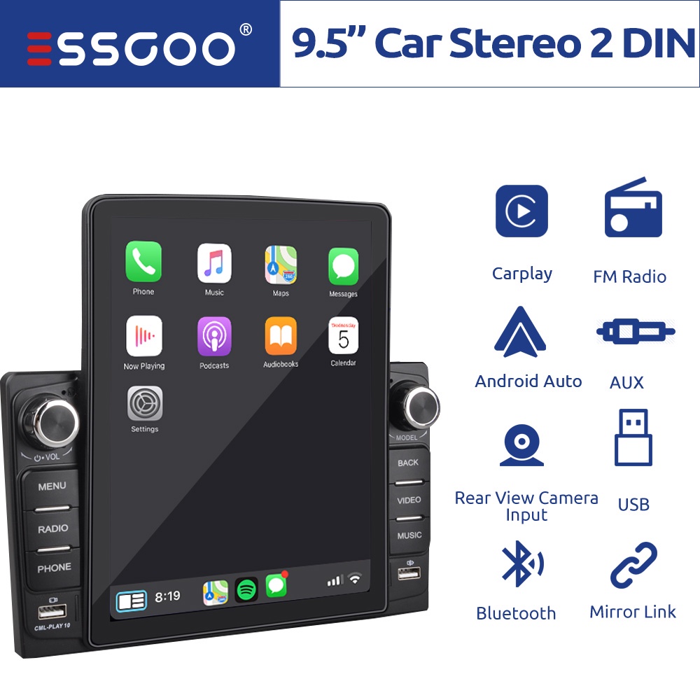 ESSGOO Carplay Android 9.5 " Rádio Estéreo Para Carro Bluetooth MP5 Vedio Reprodutor De Multimídia 2 Din Espelho link FM USB AUX