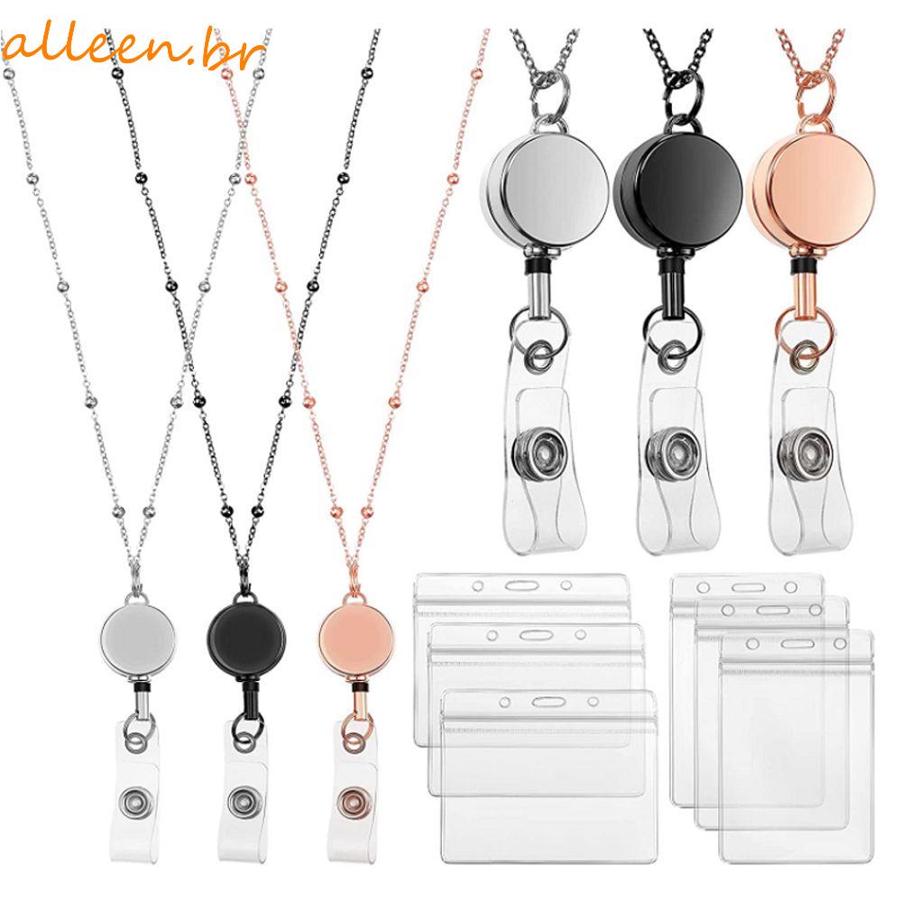 ALLEEN Carretel Retrátil De Crachá Cordão Feminino Empregado À Prova D'água Clipes De Aço Inoxidável Chaveiro Nome Porta-Chaves Colar
