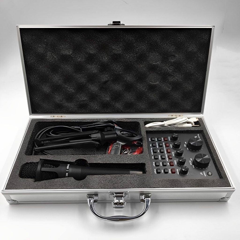 Kit microfone condensador placa de som V8 Soundcard Para Gravação Em Transmissão Ao Vivo