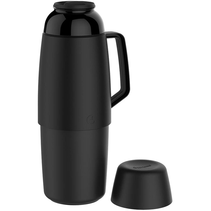Garrafa de Café Chá Termica 1L Rosca Preta Lisa Soprano