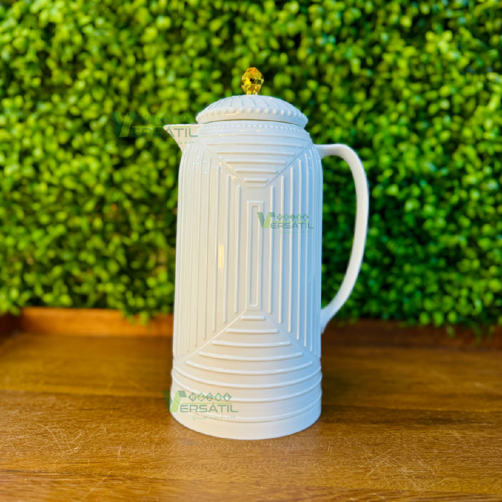 Garrafa Térmica 1L de Café Água Chá Leite com Alça Requintada com Tampa Encaixável de Rosca com Botão Branca Branco Geometric