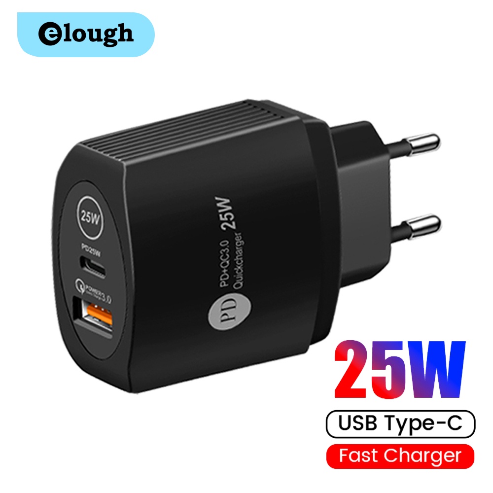 Elough Portas Duplas Carregador USB PD 25W Tipo C Cabeçote De Parede Rápido Adaptador -