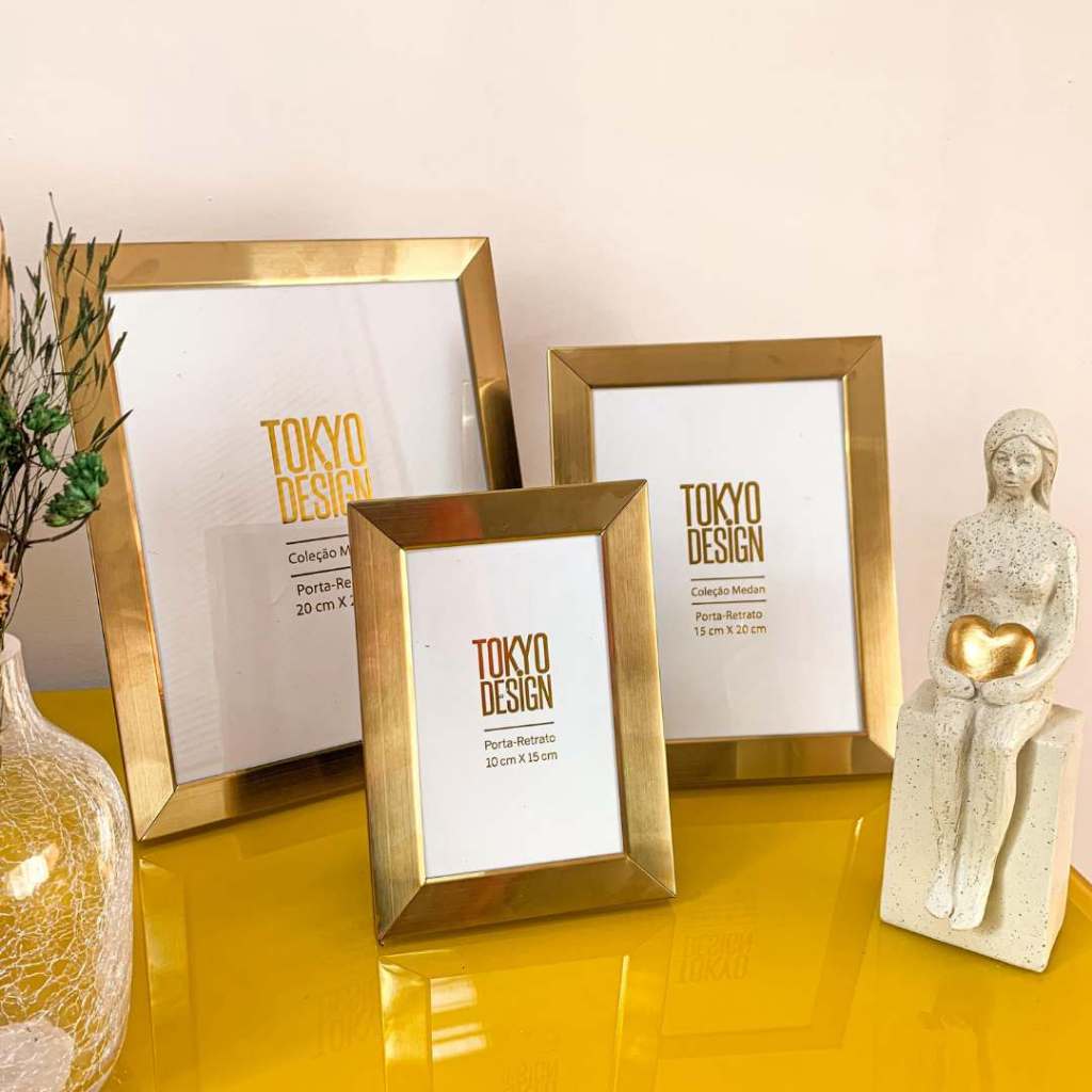 Porta Retrato Dourado Prata Preto Fosco Metal c/ vidro 10x15 15x20 20x25 Porta Foto - Tokyo Desing