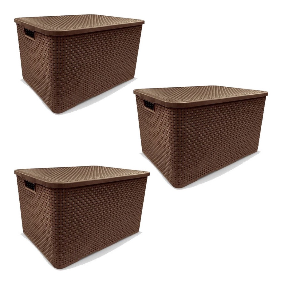 KIT 3 Caixa Organizadora Plástica Marrom Cesto Rattan 15 Litros